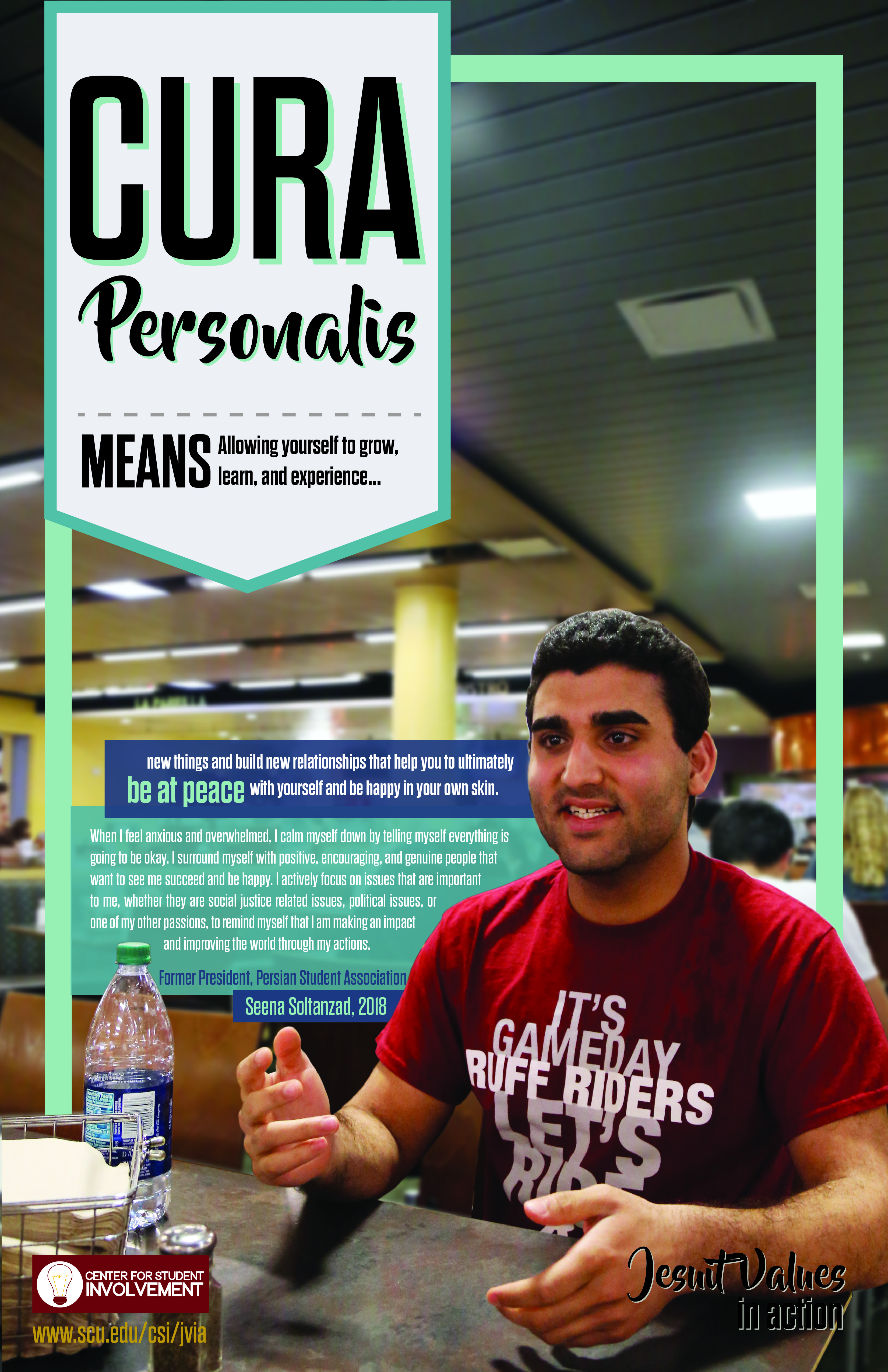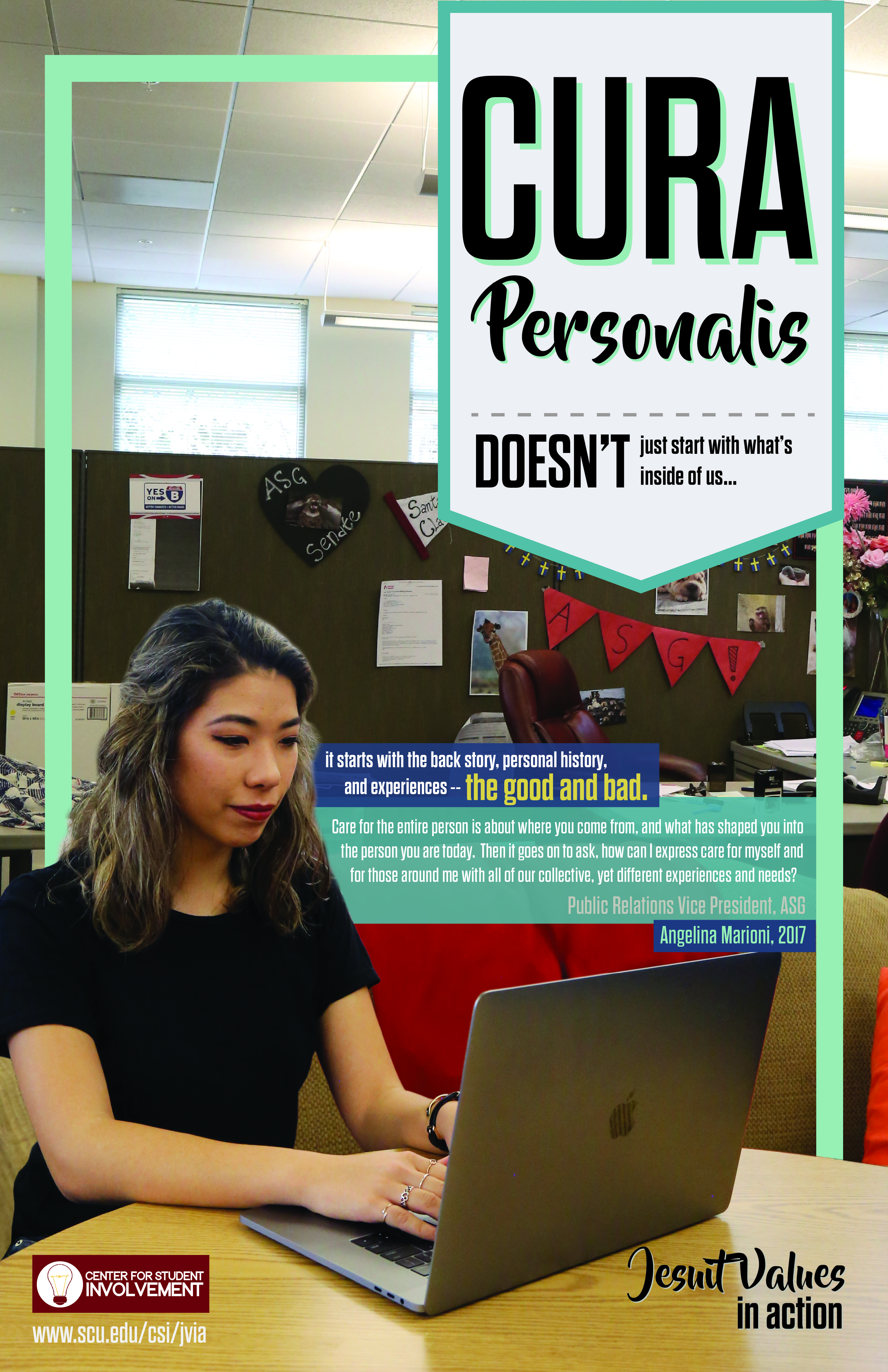 - Cura Personalis: Latin phrase meaning "care for the person," cura personalis is having concern and care for the personal development of the whole person. This implies a dedication to promoting human dignity and care for the mind, body and spirit of the person.